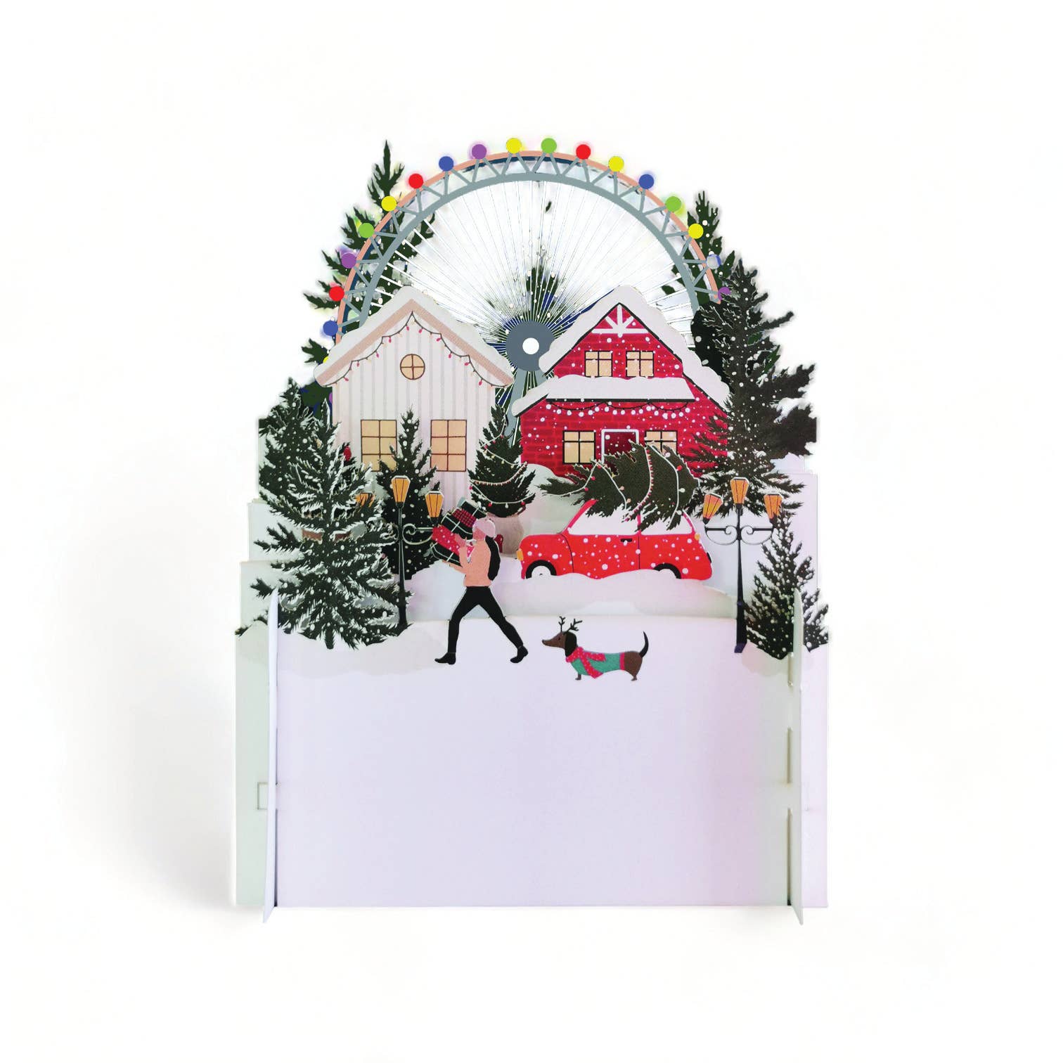 The Miniature World collection features stunning 3D scenes that are created using intricately laser-cut paper, resulting in a beautiful and mesmerizing scene that comes to life when the card is opened. You can write your message on the back of the card. The card unfolds to create the 3D look.