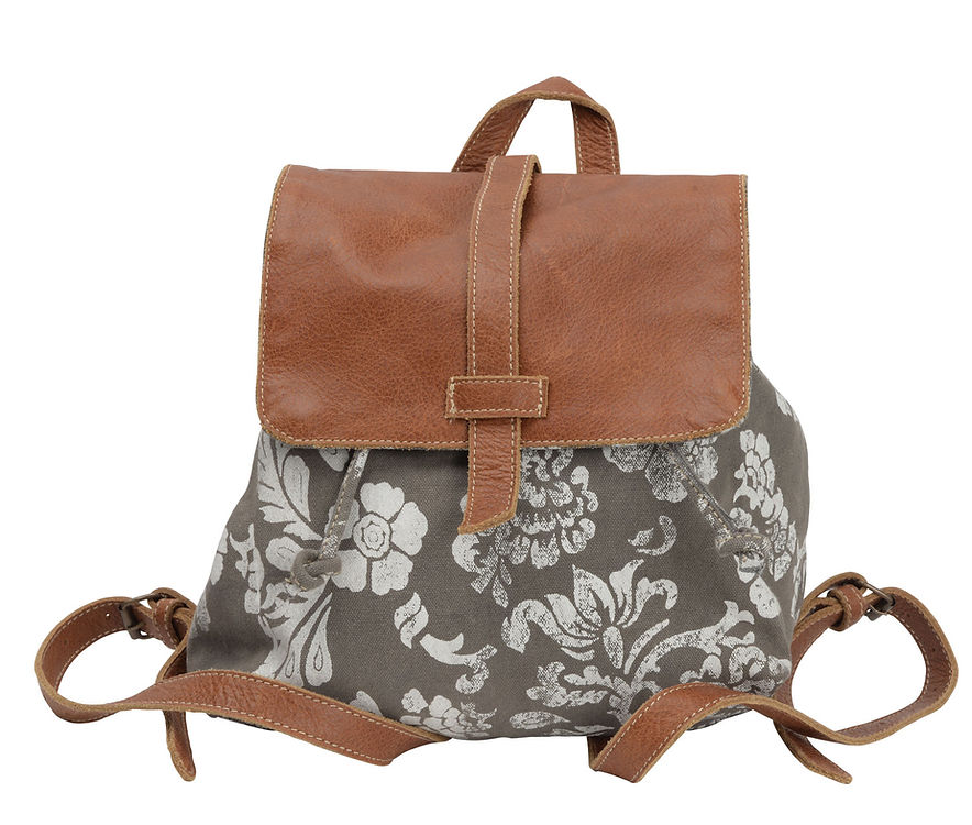 Clea Ray Vintage Canvas Flower And Leather Backpack