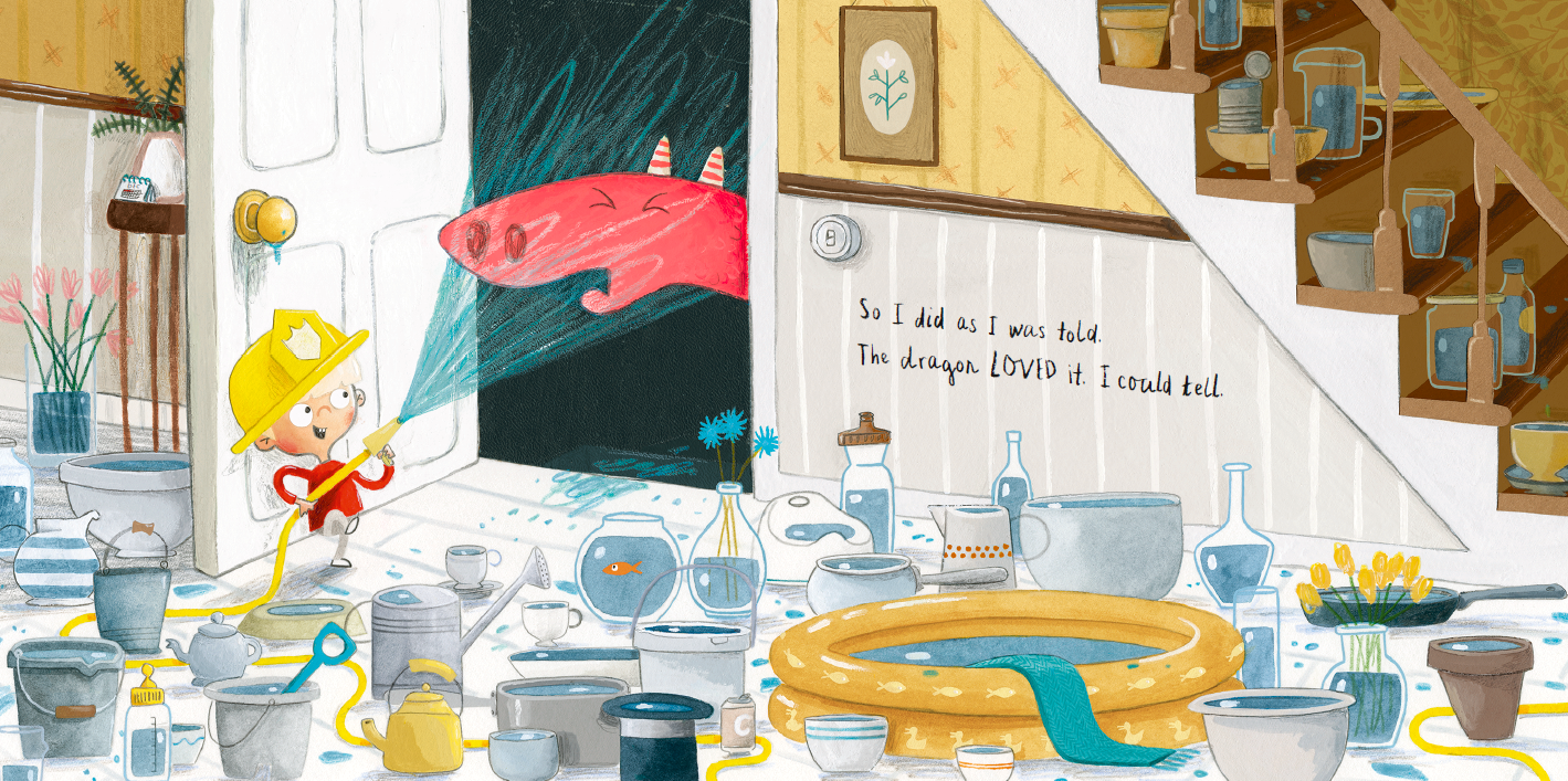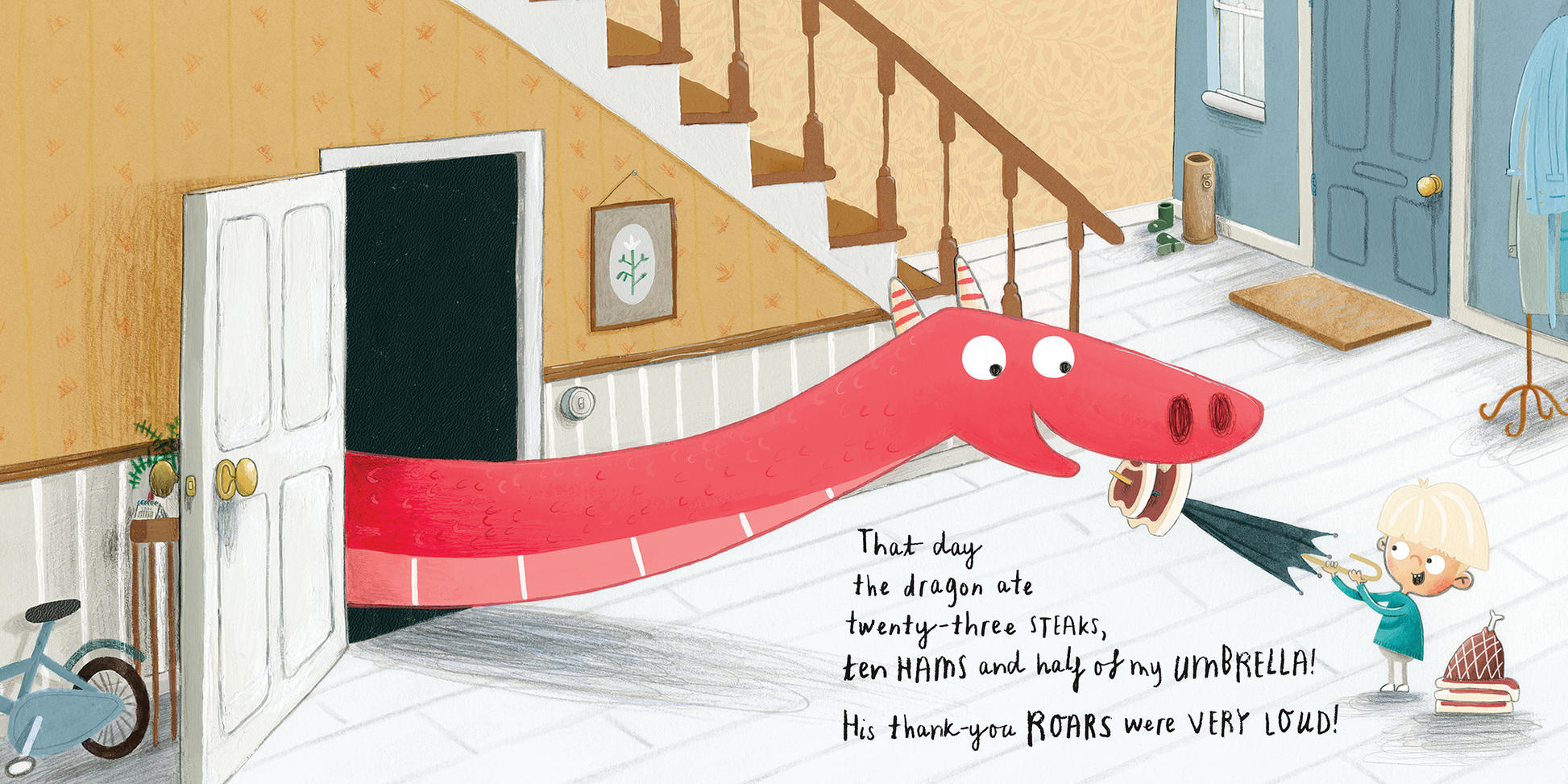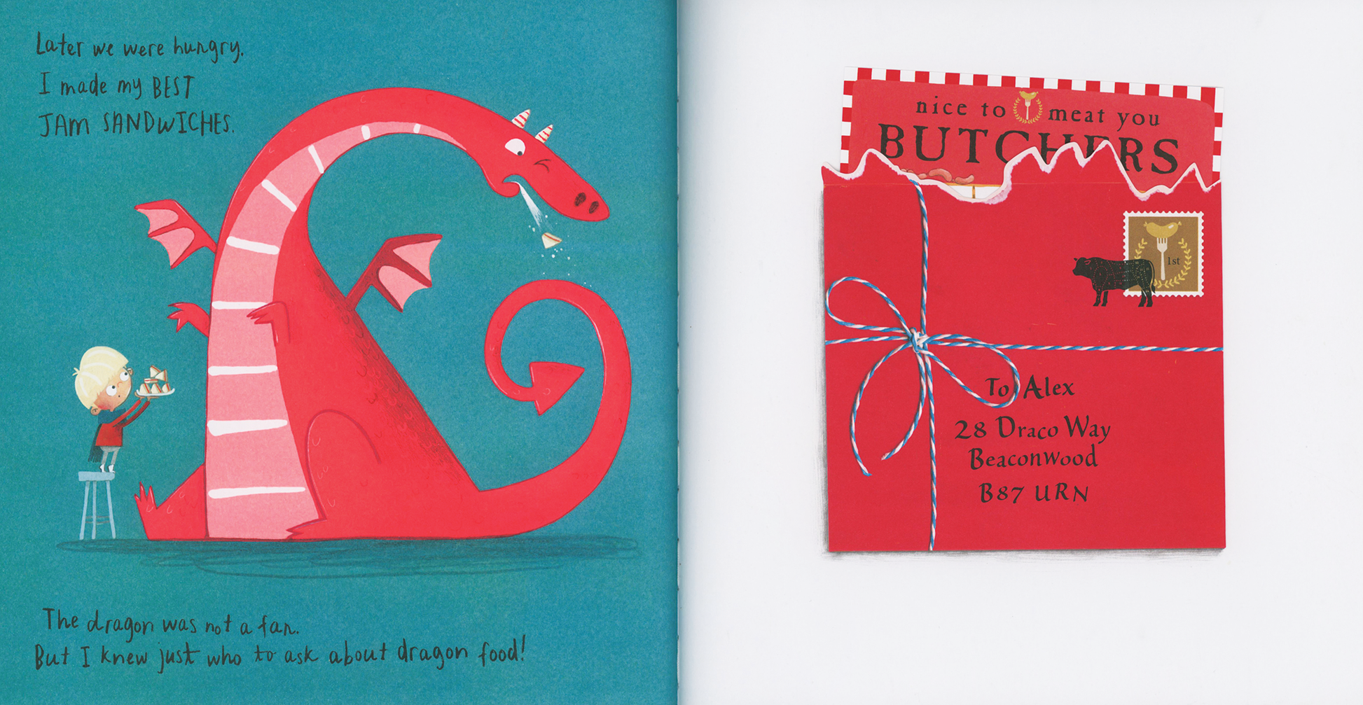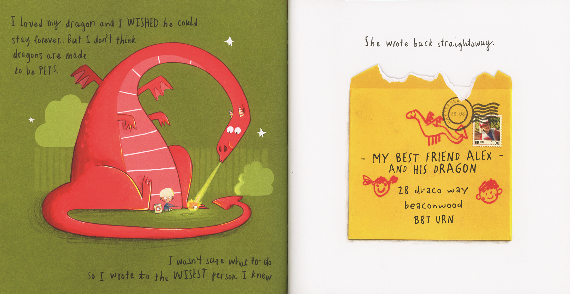 One day, Alex finds a dragon living in the cupboard under the stairs. Luckily, he knows just what to do. He writes letters to lots of different people – including the fire brigade and the butcher – to ask how he should take care of his surprise visitor. Children will love opening the five envelopes and reading the hilarious letters to Alex and then following his magical adventure with his new fiery friend.