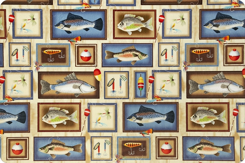 Anyone who's thrown a line in a lake or river knows how chilly it can get near the water. Next time your angler tries his or her luck, be sure to outfit them with this our new fishing-inspired digital print! Featuring bobbers, trophy fish, flies and lures, your fisherman will be dreaming of their next big catch no matter if they're at home curled up with throw blanket or out on the water