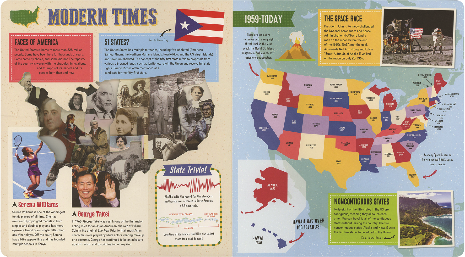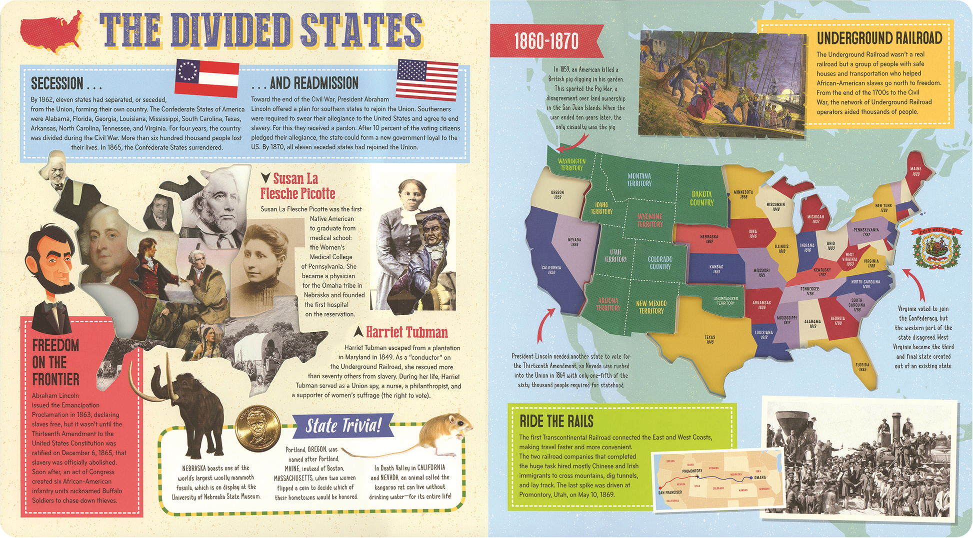 This stylish atlas features key moments of American history in an innovative format, with each die-cut spread building on the last as more states are added to the union, culminating in a modern-day map of America. From the 1700s through today — one layer at a time — it’s filled with dates, facts, and historical figures.