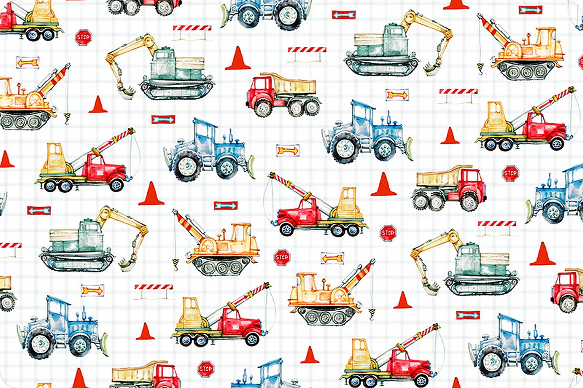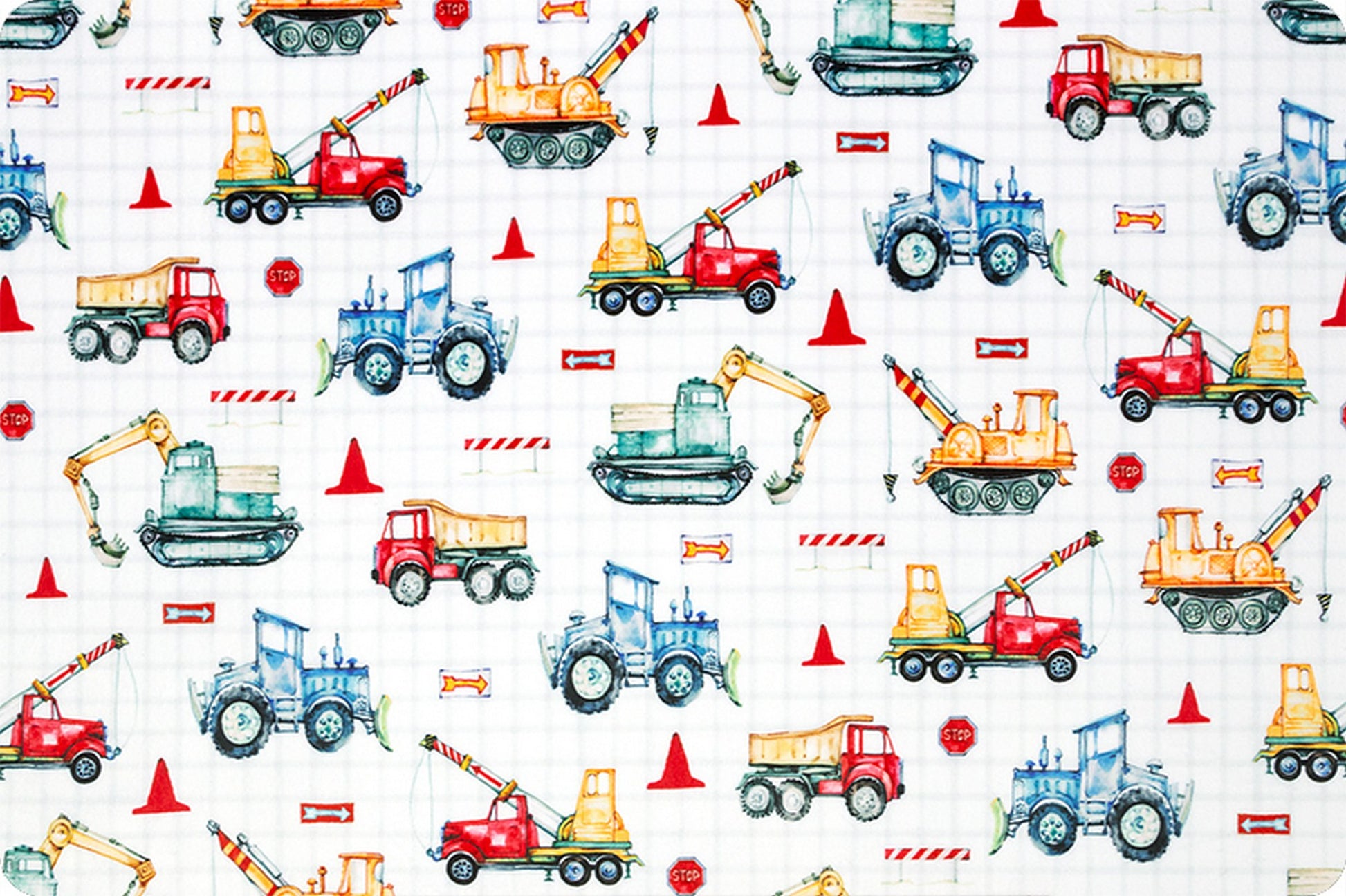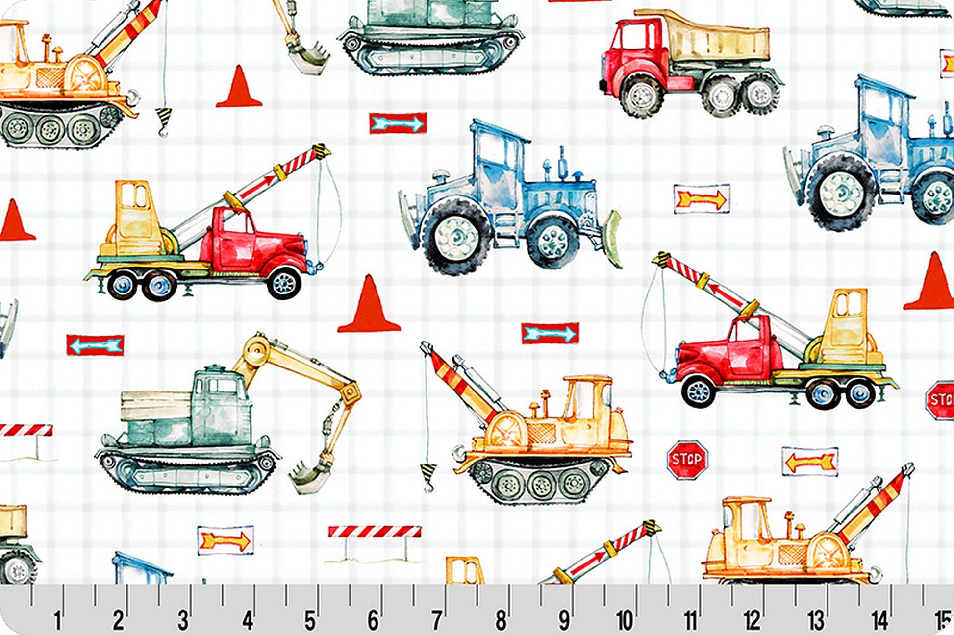 Who says Cuddle® can only be printed with pretty flowers and cute illustrated animals? Appropriately named "Worksite", this unique digital print features a wide range of construction-related graphics, from orange cones and signs, to cranes and dump trucks. Get ready to hear lots of "vroom vrooms" from the other room - this fabric would be great sewn into a throw blanket or pillowcase for your little construction fan!